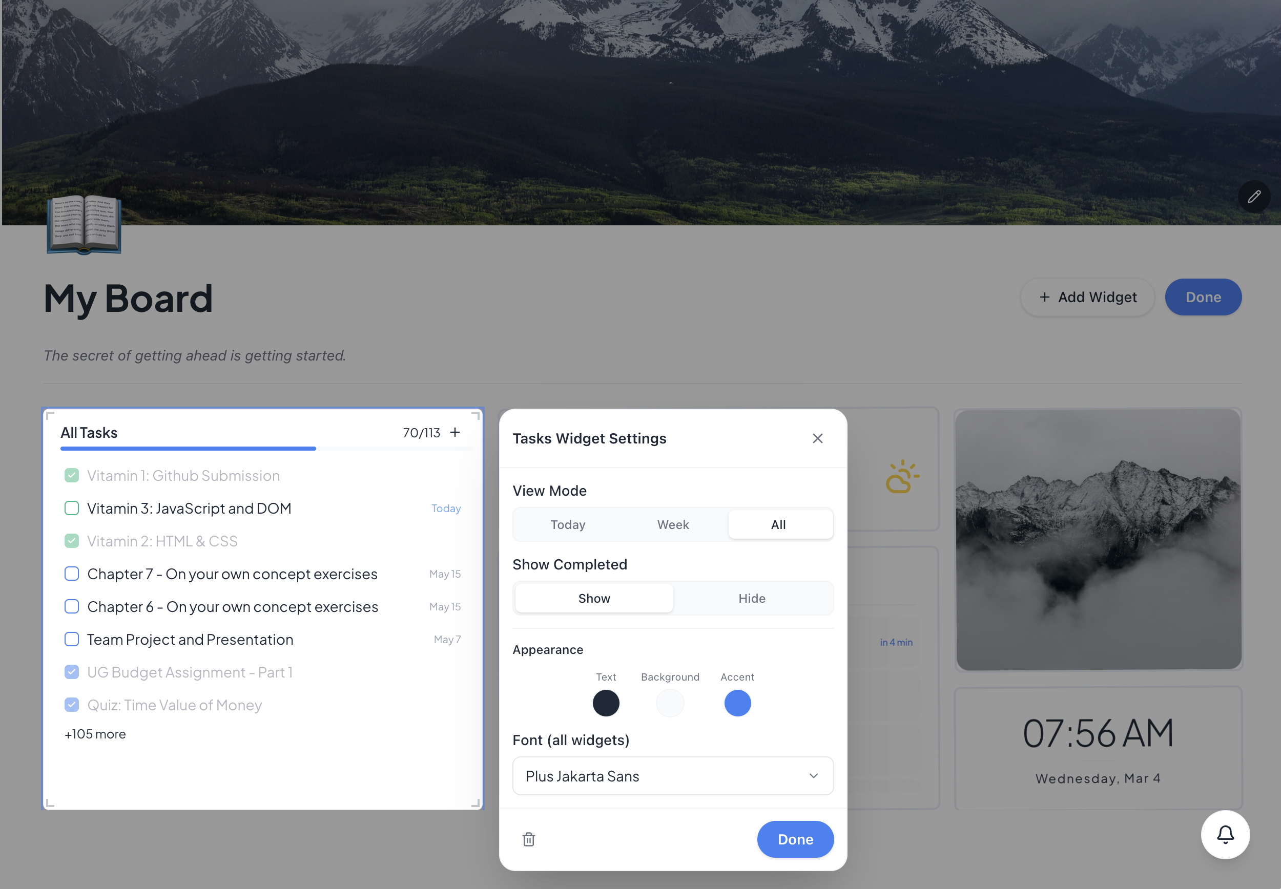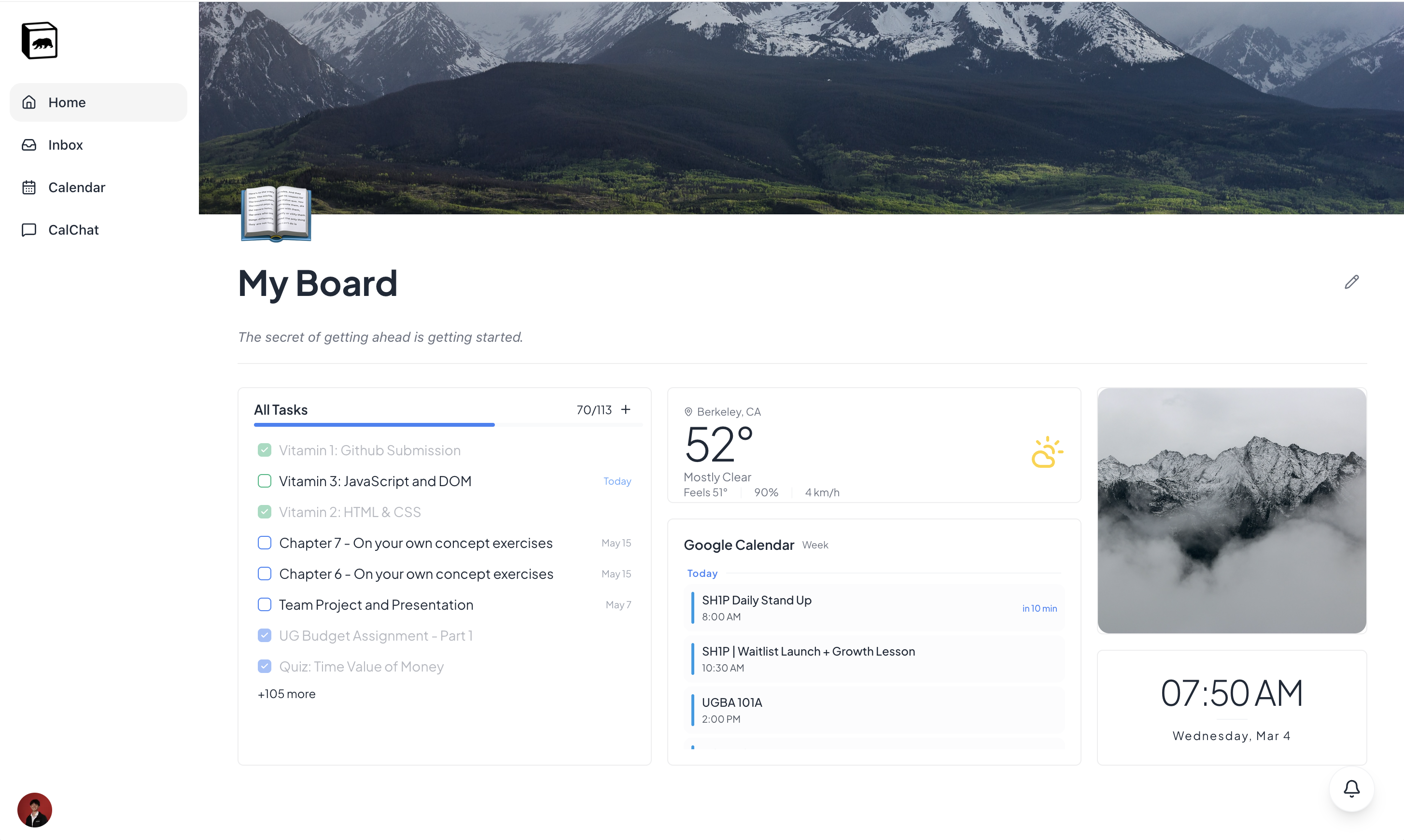Your personalized home screen to see every deadline, class, and task at a glance.
